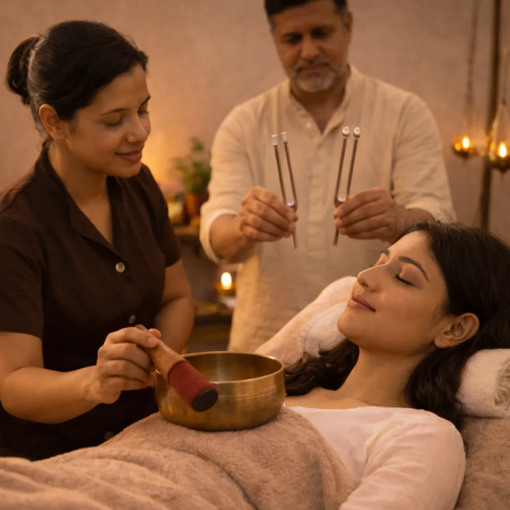 Sound Healing uses therapeutic vibrations to calm the nervous system and promote deep relaxation.